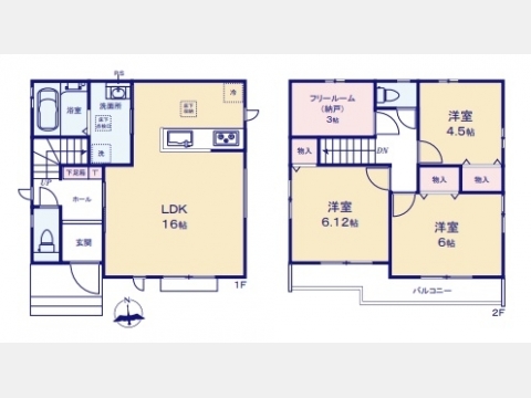 LDK 16 畳 1 階 1 室 洋室 6.1 畳 2 階 1 室 洋室 6 畳 2 階 1 室 洋室 4.5 畳 2 階 1 室 S 3 畳 2 階 1 室 |