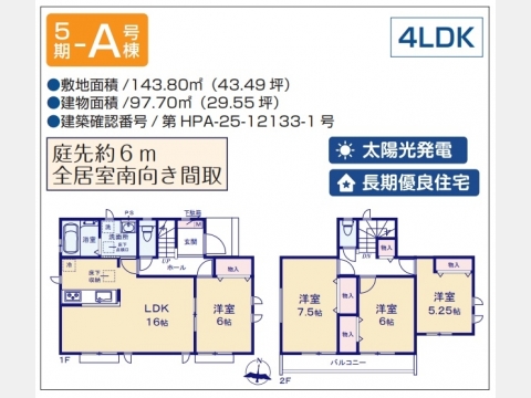 新着更新新築 東大和市高木2丁目〈新築〉西武多摩湖線「武蔵大和」駅徒歩15分 太陽光発電採用住宅 長期優良住宅 ZEH水準省エネ住宅 敷地面積43坪超 浄水器 浴室乾燥機 全2棟5期A号棟