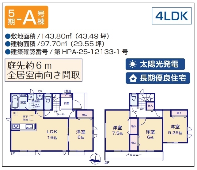 | 土地面積 | 143.80m² | 物件種別 | 新築戸建 |