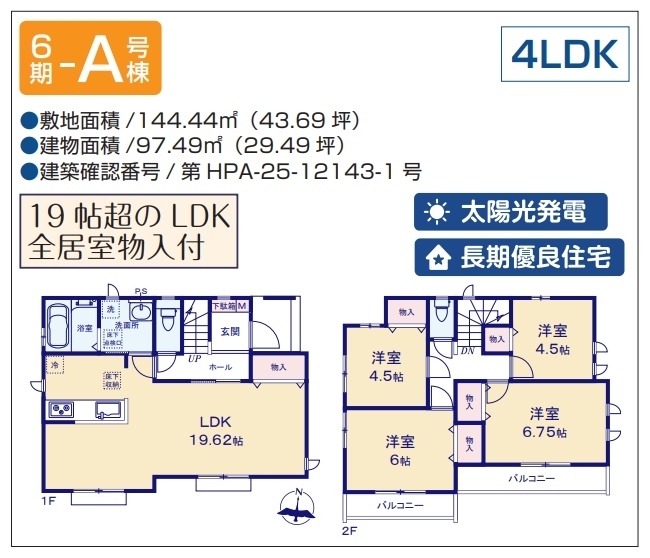 | 土地面積 | 144.44m² | 物件種別 | 新築戸建 |