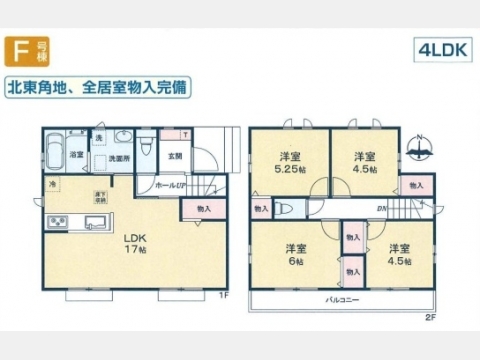 LDK 17 畳 1 階 1 室 洋室 6 畳 2 階 1 室 洋室 4.5 畳 2 階 2 室 洋室 5.3 畳 2 階 1 室 |