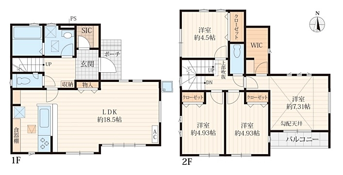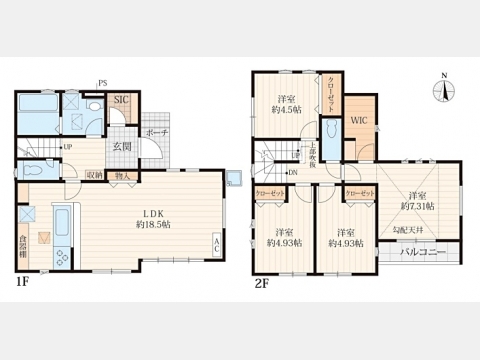 LDK 18.5 畳 1 階 1 室 洋室 7.3 畳 2 階 1 室 洋室 4.5 畳 2 階 1 室 洋室 4.9 畳 2 階 2 室 |