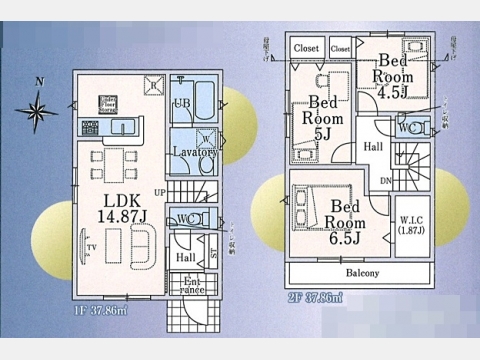 LDK 14.8 畳 1 階 1 室 洋室 6.5 畳 2 階 1 室 洋室 5 畳 2 階 1 室 洋室 4.5 畳 2 階 1 室 |