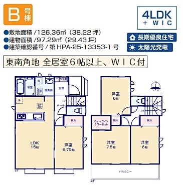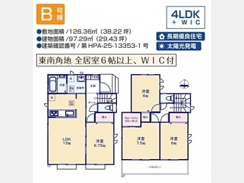 | 土地面積 | 126.36m² | 物件種別 | 新築戸建 |