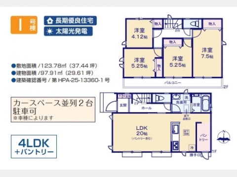 | 土地面積 | 123.78m² | 物件種別 | 新築戸建 |