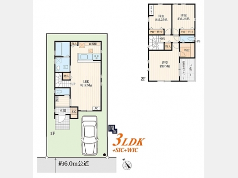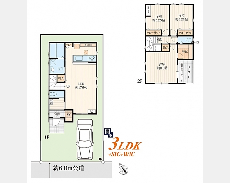 LDK 17.5 畳 1 階 1 室 洋室 8.5 畳 2 階 1 室 洋室 5.3 畳 2 階 2 室 |