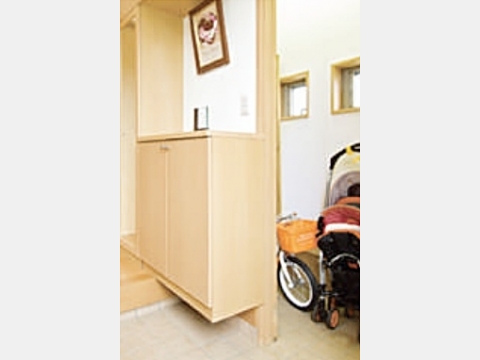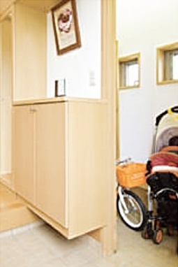 土間収納はゴルフバッグにベビーカー、雨の日の長靴置き場など置き場に困るもの外で使用したものを、汚れを気にせずそのまま収納できます。