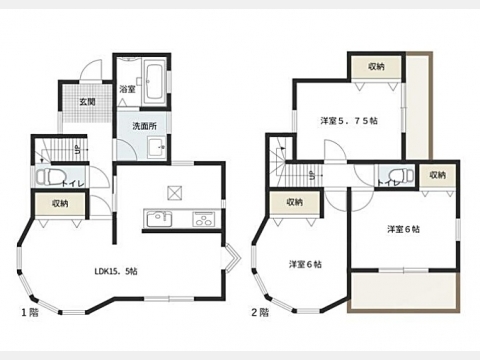 LDK 15.5 畳 1 階 1 室 洋室 6 畳 2 階 2 室 洋室 5.8 畳 2 階 1 室 |