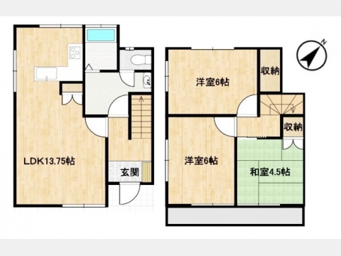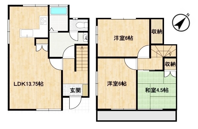 LDK 13.7 畳 1 階 1 室 和室 4.5 畳 2 階 1 室 洋室 6 畳 2 階 2 室 |