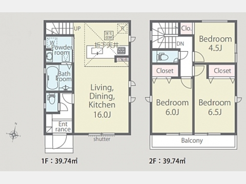 LDK 16 畳 1 階 1 室 洋室 6 畳 2 階 2 室 洋室 4.5 畳 2 階 1 室 |