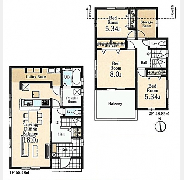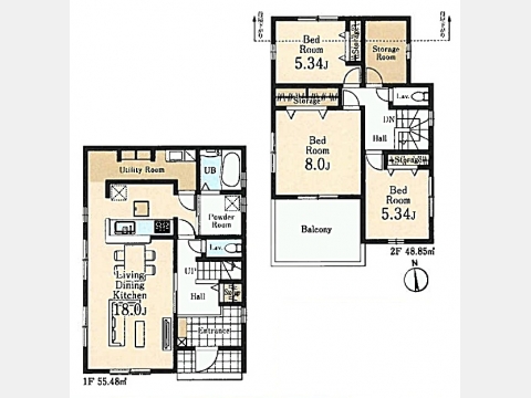 LDK 18 畳 1 階 1 室 洋室 8 畳 2 階 1 室 洋室 5.3 畳 2 階 2 室 S |