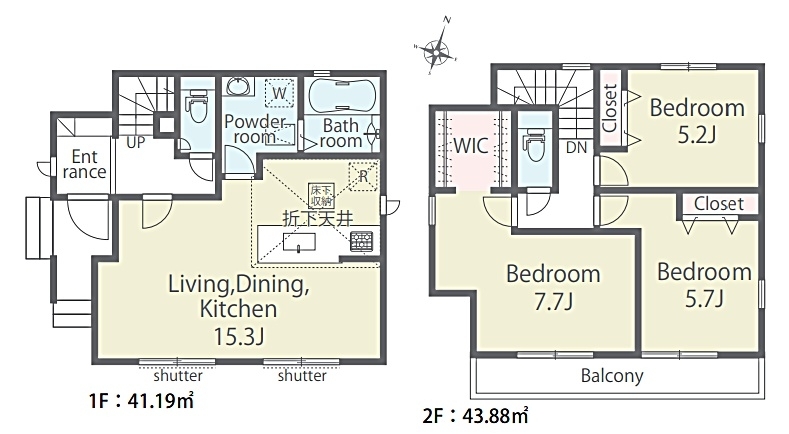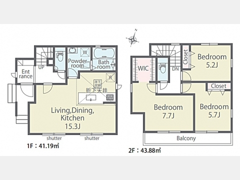 LDK 15.3 畳 1 階 1 室 洋室 7.7 畳 2 階 1 室 洋室 5.7 畳 2 階 1 室 洋室 5.2 畳 2 階 1 室 |