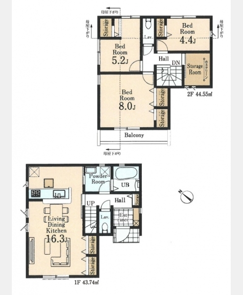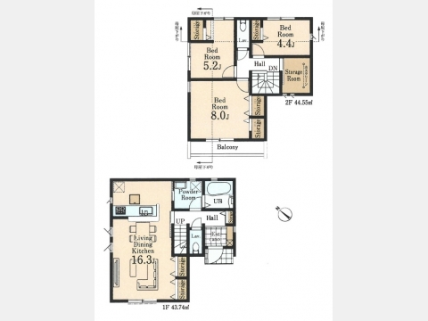 LDK 16 畳 1 階 1 室 洋室 8 畳 2 階 1 室 洋室 5.2 畳 2 階 1 室 洋室 4.4 畳 2 階 1 室 |
