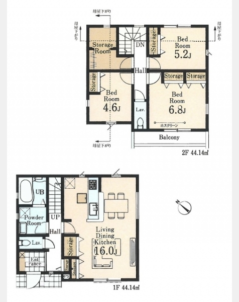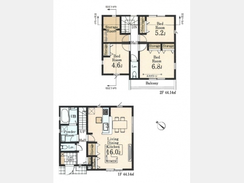 LDK 16 畳 1 階 1 室 洋室 6.8 畳 2 階 1 室 洋室 5.2 畳 2 階 1 室 洋室 4.6 畳 2 階 1 室 |