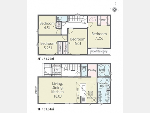LDK 18 畳 1 階 1 室 洋室 7.3 畳 2 階 1 室 洋室 6 畳 2 階 1 室 洋室 5.3 畳 2 階 1 室 洋室 4.5 畳 2 階 1 室 |