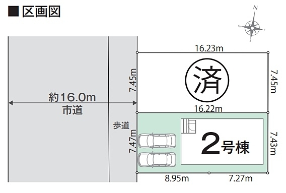 | 接道状況 | (西 16.0m 公道 間口7.5m ) | ||
