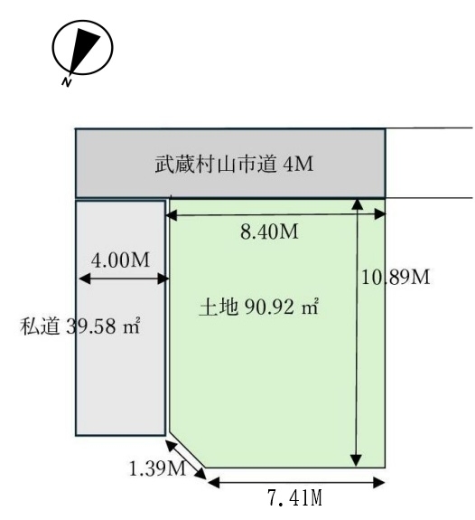 | 接道状況 | (南 4.0m 公道 間口8.4m ) | ||