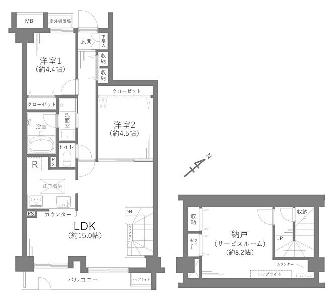 LDK 15 畳 洋室 4.2 畳 洋室 4.1 畳 S 8.2 畳 |