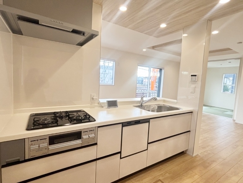 システムキッチン、カウンターキッチン、食洗機、トイレ2ヶ所、温水洗浄便座、追い焚き、インターネット対応、ウォークインクローゼット、床下収納、TVドアホン、バルコニー、南向き立地、駐車場あり、駐車場2台以上、所有権、 |