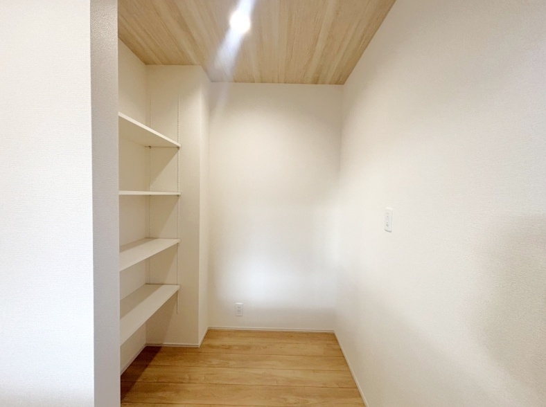 天井を高くしてリビングに開放感をプラスした折紙天井となっています。