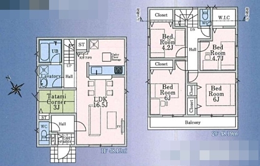 LDK 16.5 畳 1 階 1 室 洋室 6 畳 2 階 2 室 洋室 4.7 畳 2 階 1 室 洋室 4.2 畳 2 階 1 室 洋室 畳コーナー3帖 |