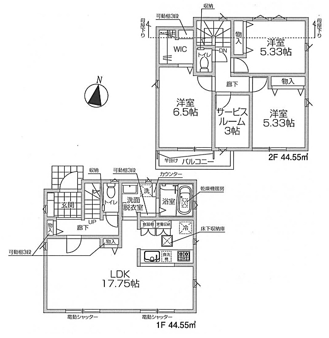 LDK 17.7 畳 1 階 1 室 洋室 6.5 畳 2 階 1 室 洋室 5.3 畳 2 階 2 室 S 3 畳 2 階 1 室 |