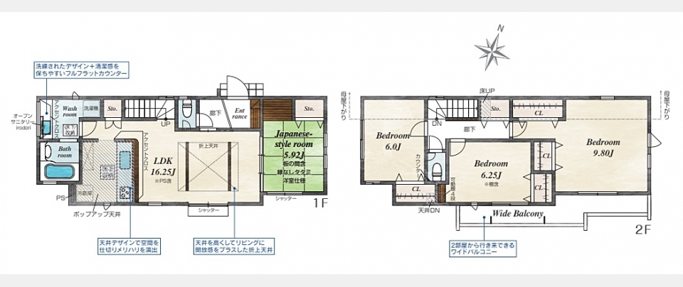 オール電化、システムキッチン、カウンターキッチン、食洗機、トイレ2ヶ所、24時間換気システム、床下収納、バルコニー、所有権、 |