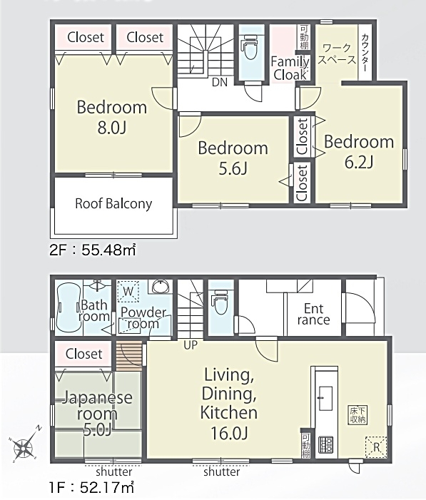 LDK 16 畳 1 階 1 室 和室 5 畳 1 階 1 室 洋室 8 畳 2 階 1 室 洋室 6.2 畳 2 階 1 室 洋室 5.6 畳 2 階 1 室 |