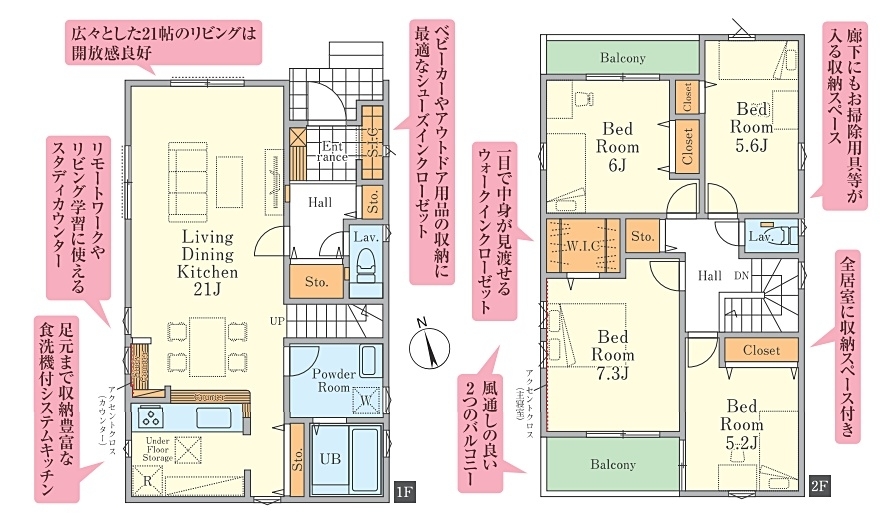 LDK 21 畳 1 階 1 室 洋室 7.3 畳 2 階 1 室 洋室 6 畳 2 階 1 室 洋室 5.6 畳 2 階 1 室 洋室 5.2 畳 2 階 1 室 |
