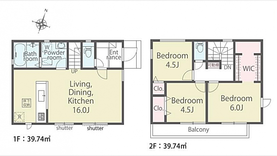 LDK 16 畳 1 階 1 室 洋室 6 畳 2 階 1 室 洋室 4.5 畳 2 階 2 室 |