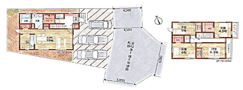 | 接道状況 | (東 4.5m 私道 ) |