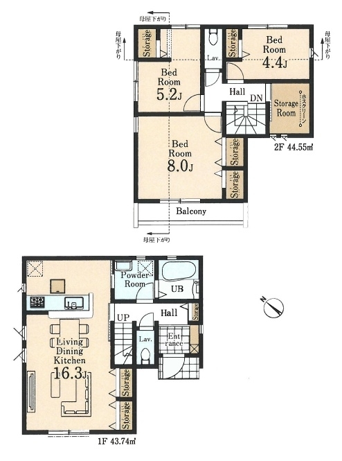 LDK 16 畳 1 階 1 室 洋室 8 畳 2 階 1 室 洋室 5.2 畳 2 階 1 室 洋室 4.4 畳 2 階 1 室 |
