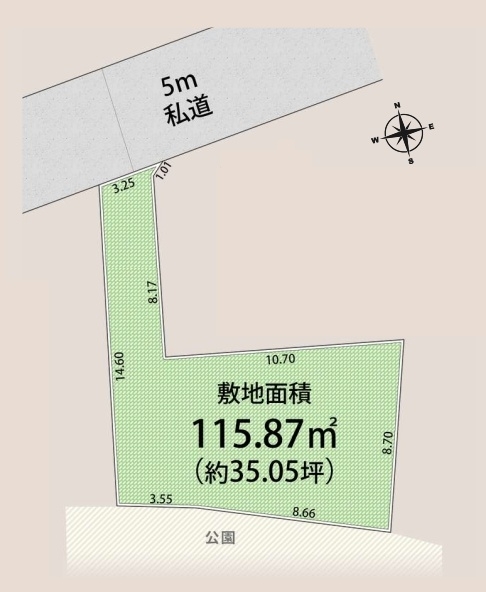 | 接道状況 | (北 5.0m 私道 間口3.3m ) |