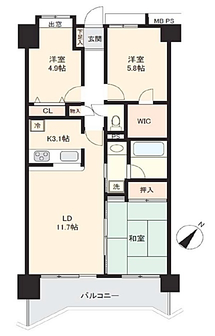 DK 11.7 畳 K 3.1 畳 洋室 4.9 畳 洋室 5.8 畳 |