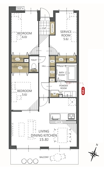 LDK 15.8 畳 洋室 6 畳 洋室 5.6 畳 S 5.6 畳 |